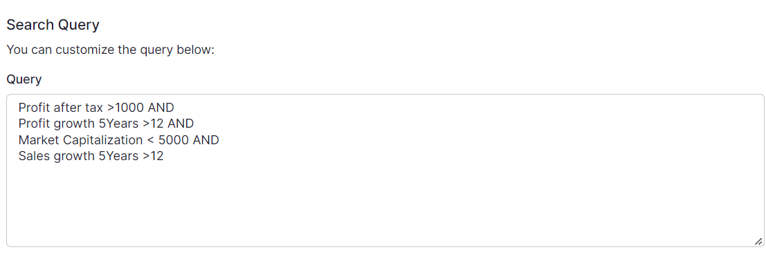 For the purpose of this article and in general, I will be using Screener.in. The interface is user friendly and the queries to filter out companies by financial parameters are intuitive.