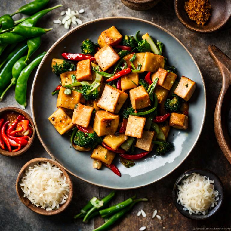 Here's a simple and flavorful recipe for "Gluten-Free Vegan Tofu Stir-Fry with Garlic, Onions, and Chilies" using coconut oil. This dish is easy to prepare and packed with delicious flavors: